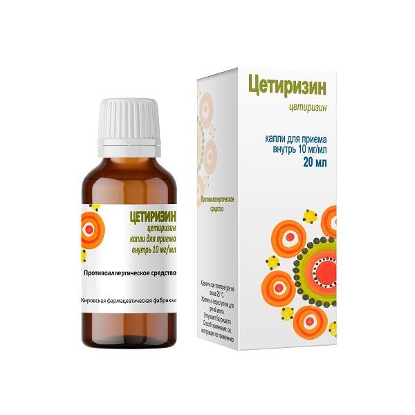 Цетиризин капли для приема внутрь 10мг/мл 20мл