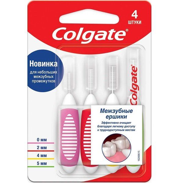 Набор Colgate/Колгейт: Ершики межзубные диаметр 0мм, 2мм, 4мм, 5мм 4шт