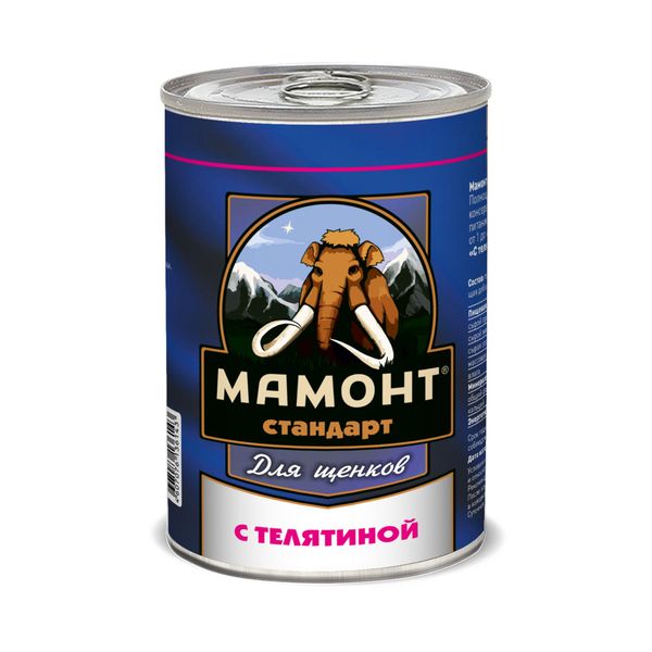 Корм влажный для щенков телятина Стандарт Мамонт жестяная банка 970г