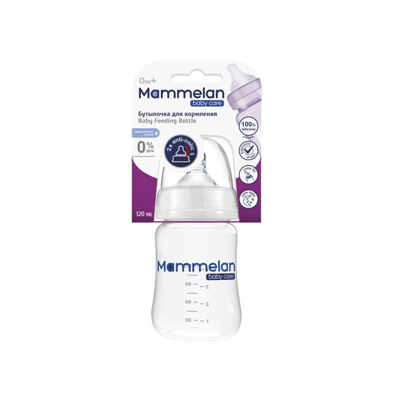 Бутылочка для кормления противоколиковая с силиконовой соской и широким горлом 0+ Mammelan/Маммелан 120мл