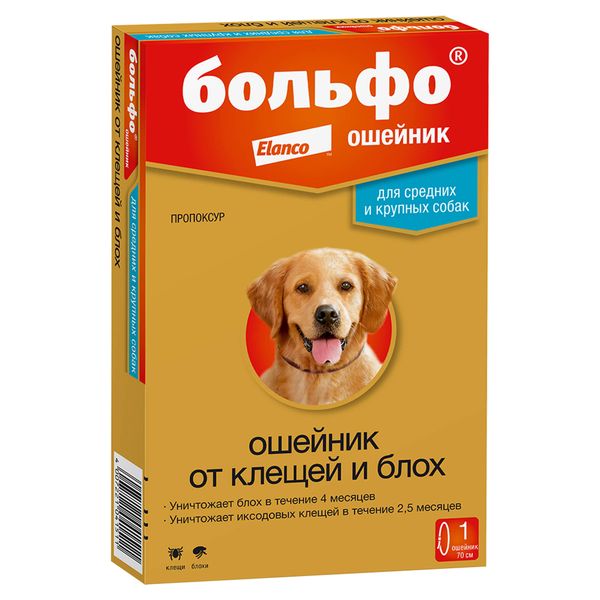 Ошейник инсектоакарицидный для средних и крупных собак Больфо 70 см