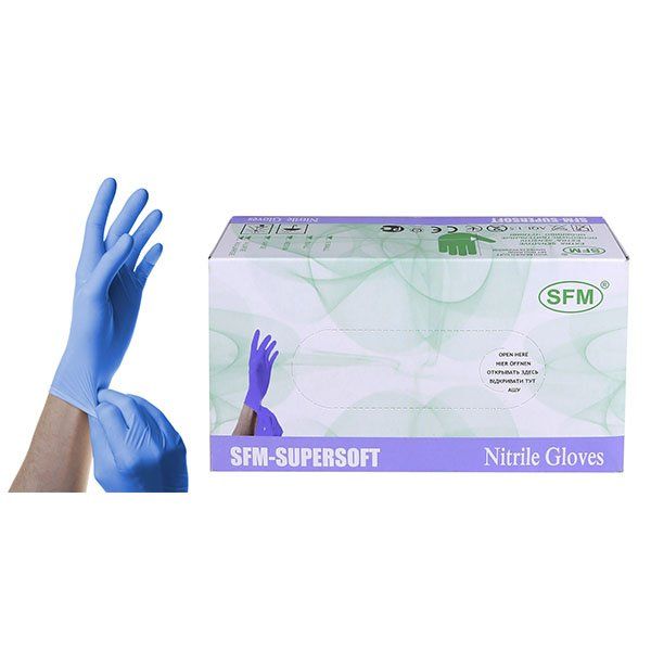 Перчатки смотровые нитриловые одноразовые нестерильные неопудренные голубые/синие SFM 200шт р.S