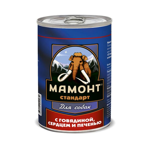 Корм влажный для собак говядина сердце и печень Стандарт Мамонт жестяная банка 970г