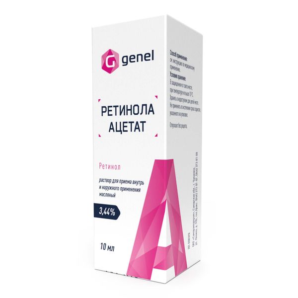Ретинола ацетат масляный раствор для приема внутрь и наружно фл.-кап. 3,44% 10мл