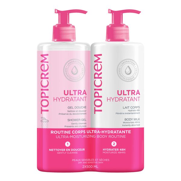 Набор ультра-увлажняющий Topicrem/Топикрем: Молочко для тела фл. 500мл+Гель для душа фл. 500мл