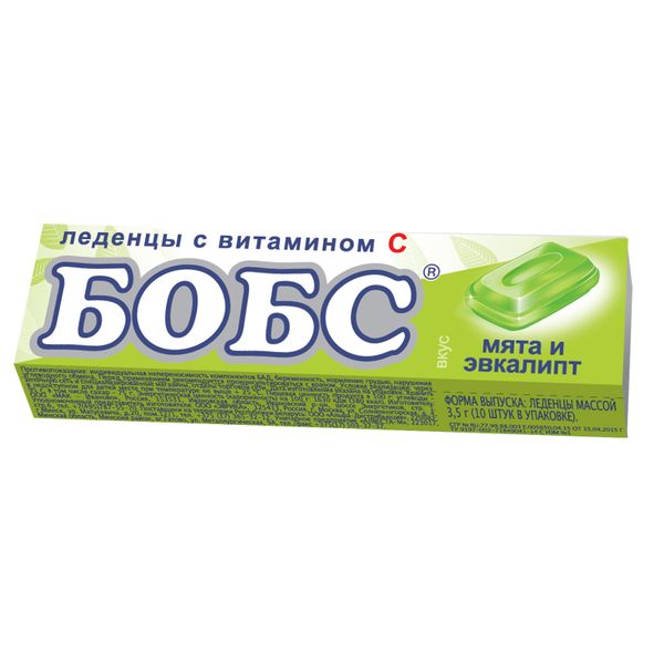 Карамель леденцовая с витамином С Мята с эвкалиптом Бобс 3.5г 10шт