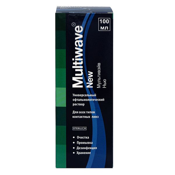 Раствор для всех типов контактных линз универсальный с контейнером New Multiwave/Мультивэйв 100мл