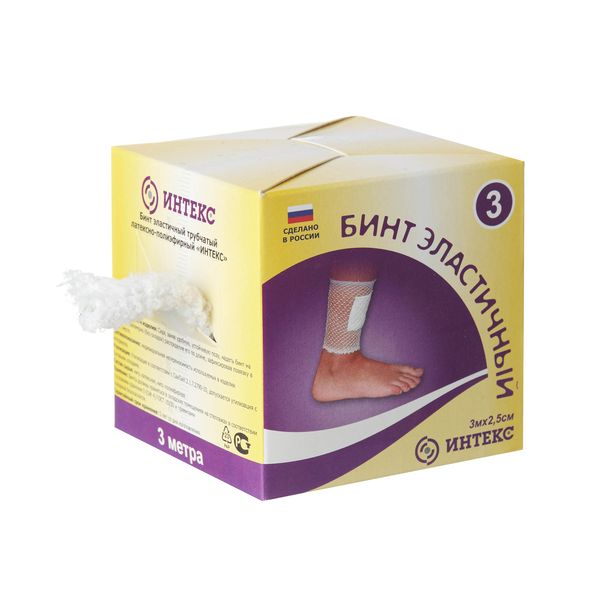 Бинт эластичный трубчатый латексно-полиэфирный нестерильный одноразовый Интекс 3м х 2,5см р.3