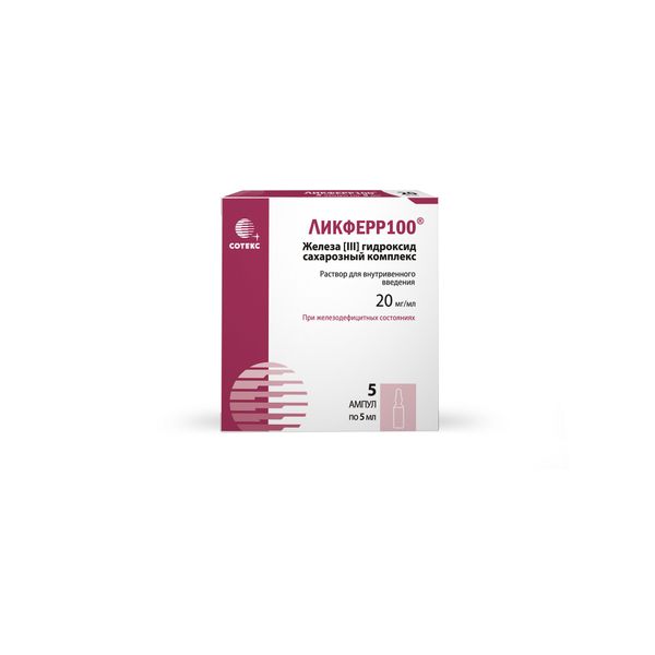 Ликферр 100 раствор для в/в введ. 20мг/мл 5мл 5шт