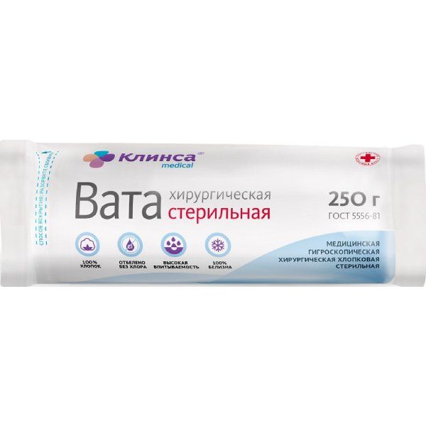 Вата хирургическая стерильная Клинса 250 г
