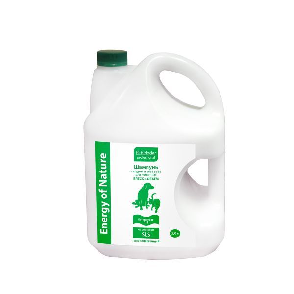 Шампунь для животных с мёдом и алоэ вера Блеск и объем Пчелодар 5л