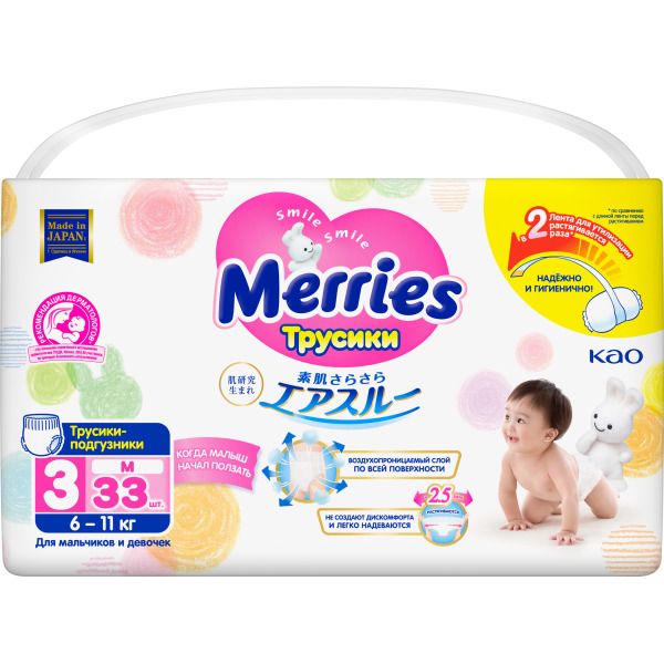 Подгузники-трусики Merries Меррис для детей Merries/Меррис р.M 6-11кг 33шт