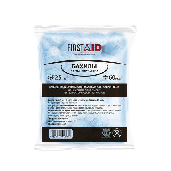 Бахилы одноразовые с двойной резинкой First Aid/Ферстэйд 60мкм 25шт