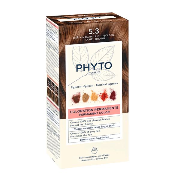 Набор Phyto/Фито: Краска-краска для волос 50мл тон 5.3 Светлый золотистый шатен+Молочко 50мл+Маска-защита цвета 12мл+Перчатки