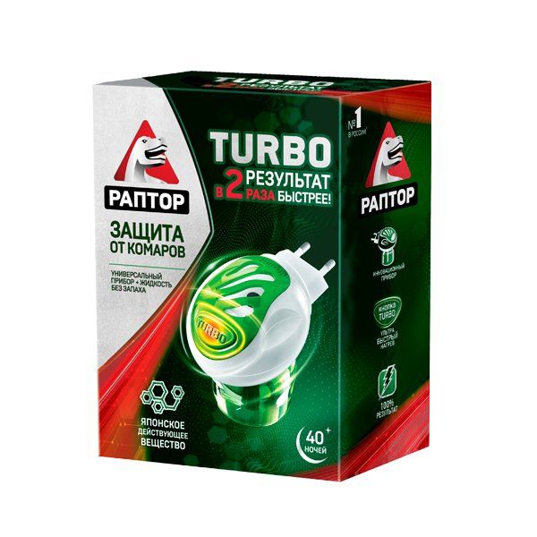 Комплект Turbo: Прибор+Жидкость от комаров 40 ночей Раптор