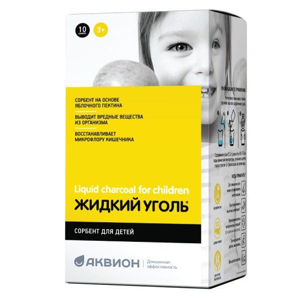 Уголь жидкий комплекс с пектином для детей порошок для приг. раствора для приема вн. 5г 10шт