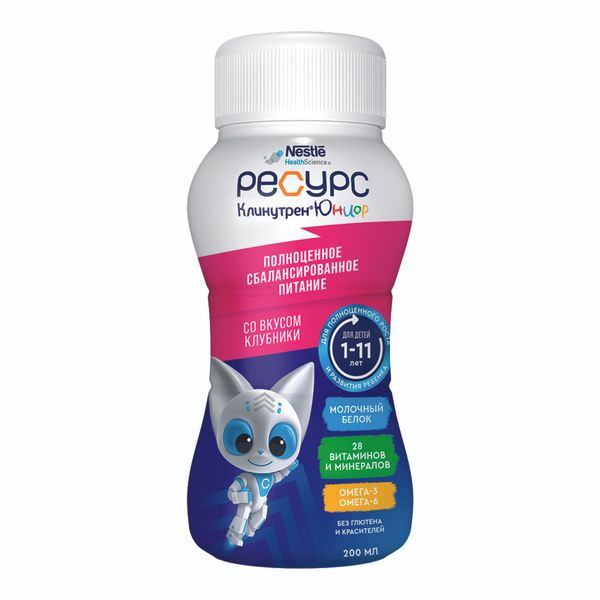 Смесь жидкая для энтерального питания вкус клубники для детей от 1 до 11 лет Junior Resource/Ресурс бут. 200мл