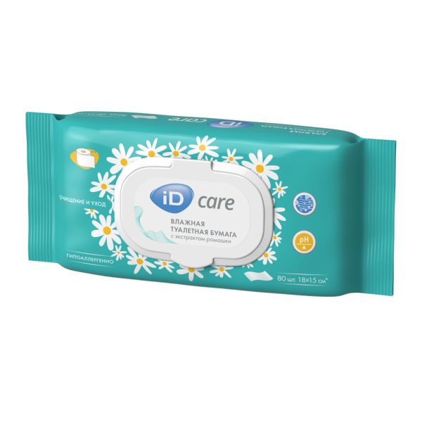 Бумага туалетная влажная с экстрактом ромашки Care iD/айДи 80шт
