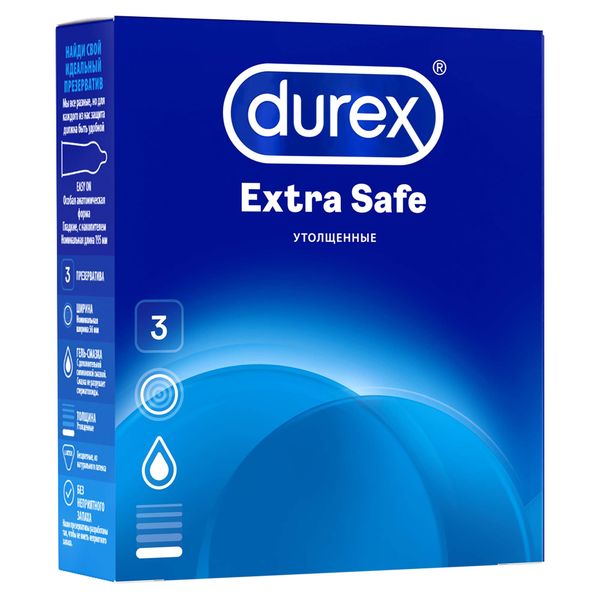 Презервативы утолщенные с дополнительной смазкой Extra Safe Durex/Дюрекс 3шт