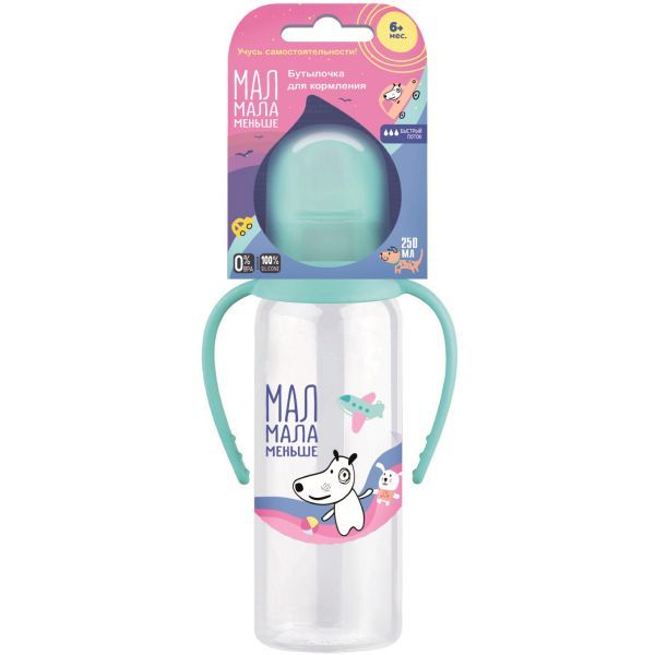 Мал мала меньше бутылочка для кор.с ручками и соской из силикона 250мл(быстр.поток)от 6 мес(кк1093)