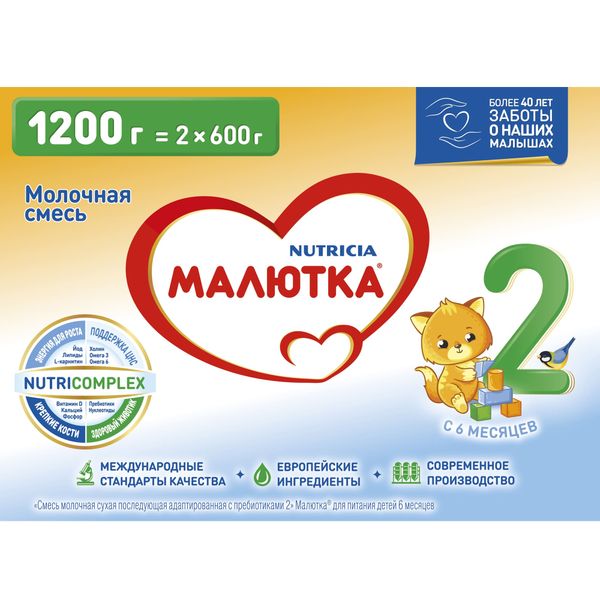 Смесь сухая молочная последующая адаптированная с пребиотиками №2 Малютка 1,2кг