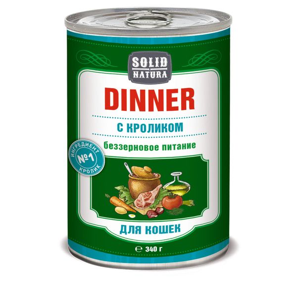 Корм влажный для кошек кролик Dinner Solid Natura жестяная банка 340г