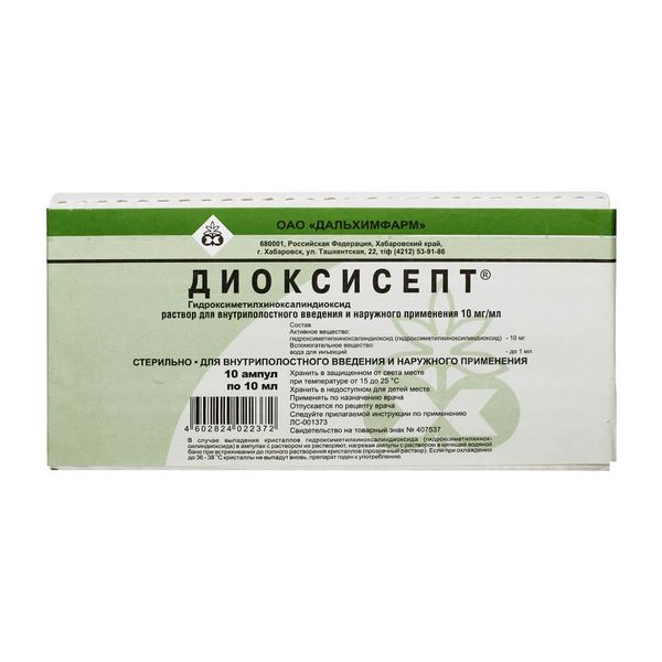 Диоксисепт р-р для вн/полост. и наруж.прим. 10 мг/мл 10 мл № 10