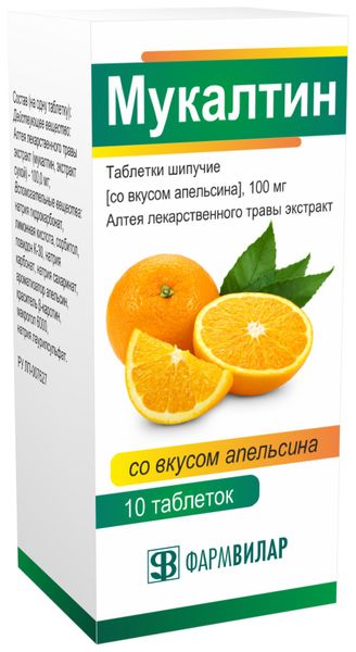 Мукалтин вкус апельсина таблетки шипучие 100мг 10шт