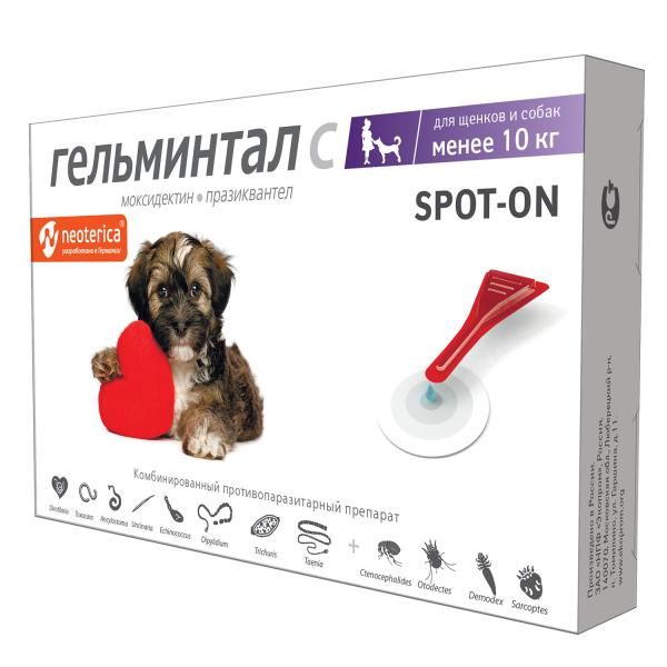 Гельминтал Spot-on для щенков и собак до 10кг капли на холку пипетка 0,5мл 2шт