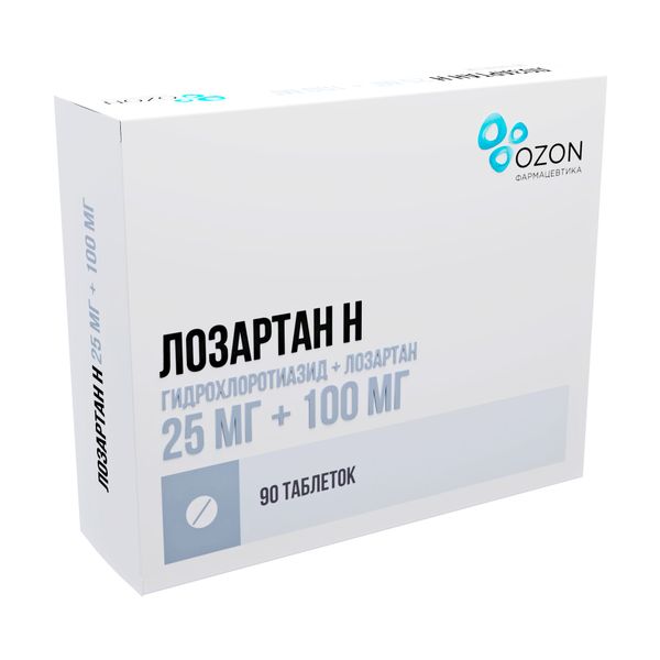Лозартан-Н таблетки п/о плен. 25мг+100мг 90шт