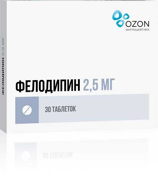 Фелодипин таблетки с пролонг. высвоб. п/о плен. 2,5мг 30шт