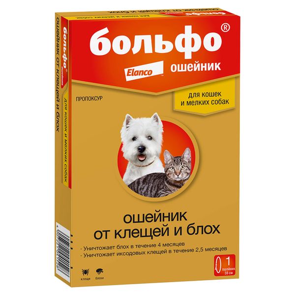 Ошейник инсектоакарицидный для кошек и маленьких собак Больфо 38 см
