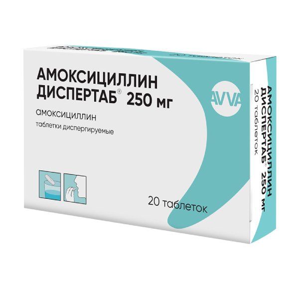 Амоксициллин Диспертаб таблетки диспергируемые 250мг 20шт