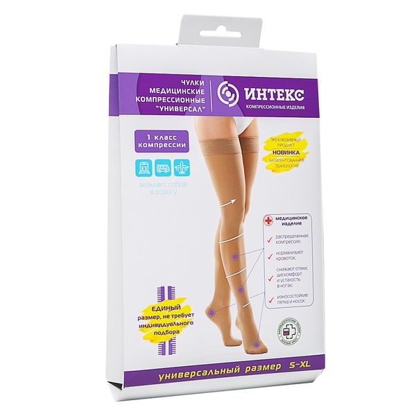 Чулки эластичные 1-й класс компрессии с резинкой с закрытым носком бежевые Вид 2 Исп.2 Универсал Интекс р.S-XL