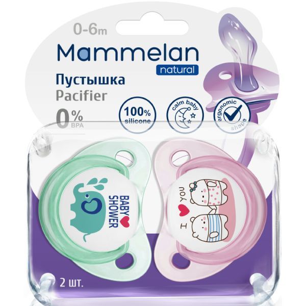 Пустышка силиконовая Mammelan/Маммелан 0-6 месяцев 2шт