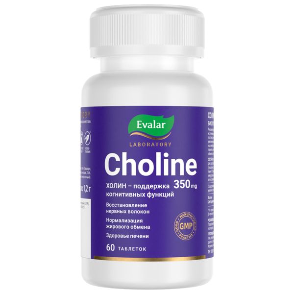Холин 350мг Эвалар лаборатория лаборатория таблетки 1,2г 60шт