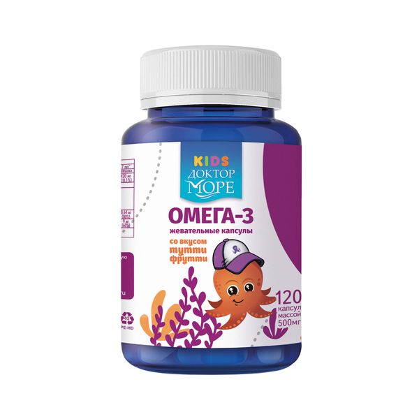 Омега-3 детская вкус тутти-фрутти Доктор Море капсулы жевательные 500мг 120шт