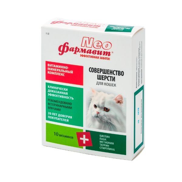 Витаминно-минеральный комплекс совершенство шерсти для кошек Neo Фармавит таблетки 60шт