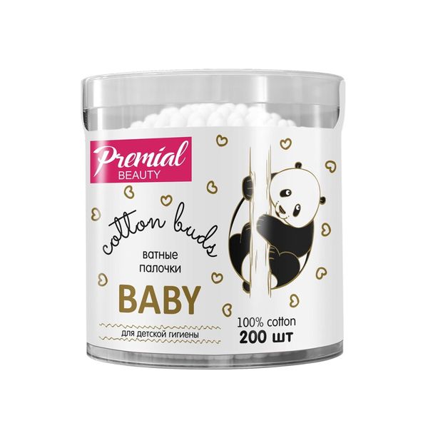 Палочки ватные детские Premial/Премиал цилиндр 200шт