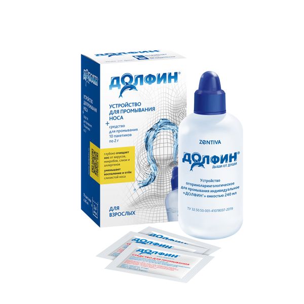 Долфин средство для промывания носа взрослым 240 мл+минерально-растительное средство 10 пак по 2 г