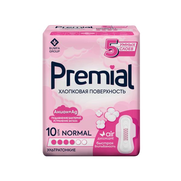 Прокладки гигиенические с крылышками хлопковая поверхность Normal Wings Premial/Премиал 10шт