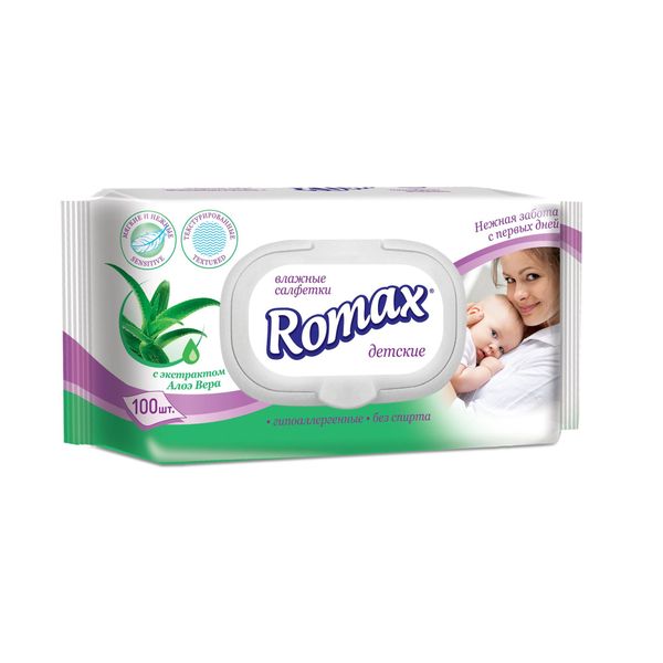 Салфетки влажные с экстрактом алое детские Romax/Ромакс 100шт