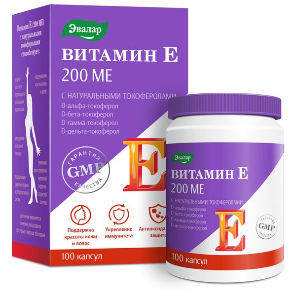 Витамин Е с натуральными токоферолами Эвалар капсулы 0,3г 200МЕ 100шт