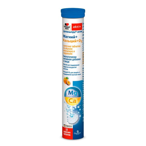 Магний+Кальций+Д3 вкус апельсина и маракуйи Activ Doppelherz/Доппельгерц таблетки шипучие 6,5г 15шт
