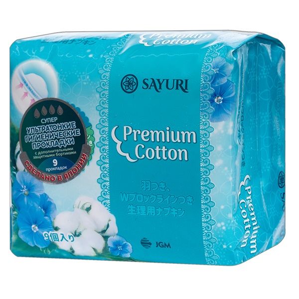 Прокладки гигиенические супер Sayuri/Саюри Premium Cotton 24см 9шт