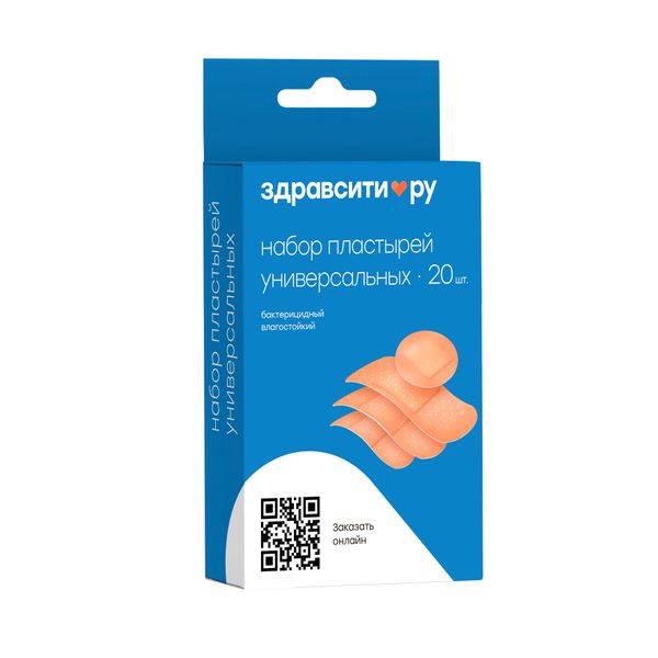 Набор Zdravcity/Здравсити: Пластырь бактерицидный влагостойкий универсальный 1,9х7,2см, 2,2х7,5см, 1х4см, d-2,3см 20шт