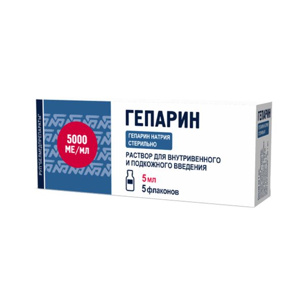 Гепарин раствор для в/в введ. и п/к введ. 5000МЕ/мл 5мл 5шт