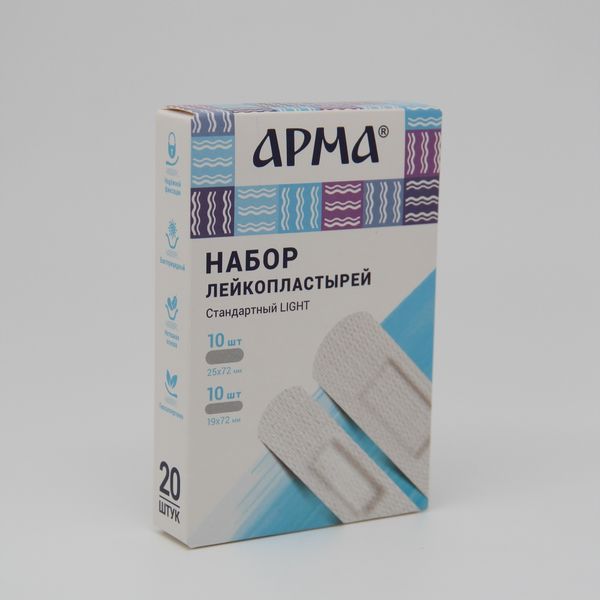 Лейкопластырь бактерицидный на нетканой основе универсальный Light Арма 20шт