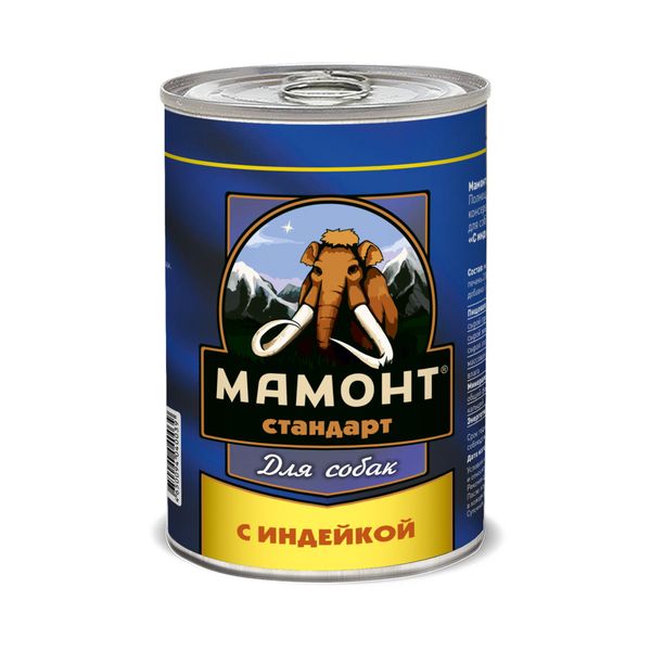 Корм влажный для собак индейка Стандарт Мамонт жестяная банка 970г