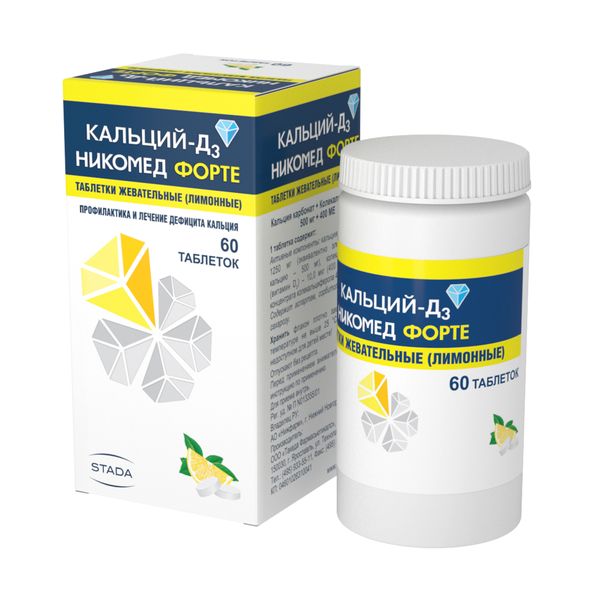 Кальций Д3 Никомед Форте лимон таблетки жевательные 60шт